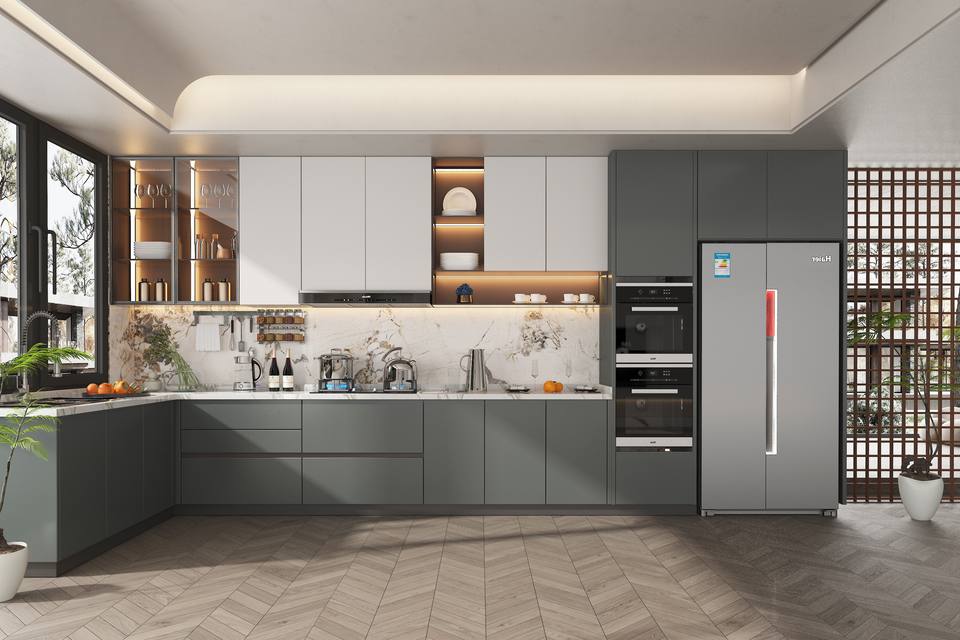 Minimalist Modern Shaker Style Stainless Steel Solid Wood Plywood Countertop Kitchen Cabinet