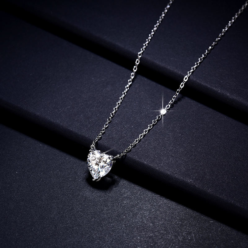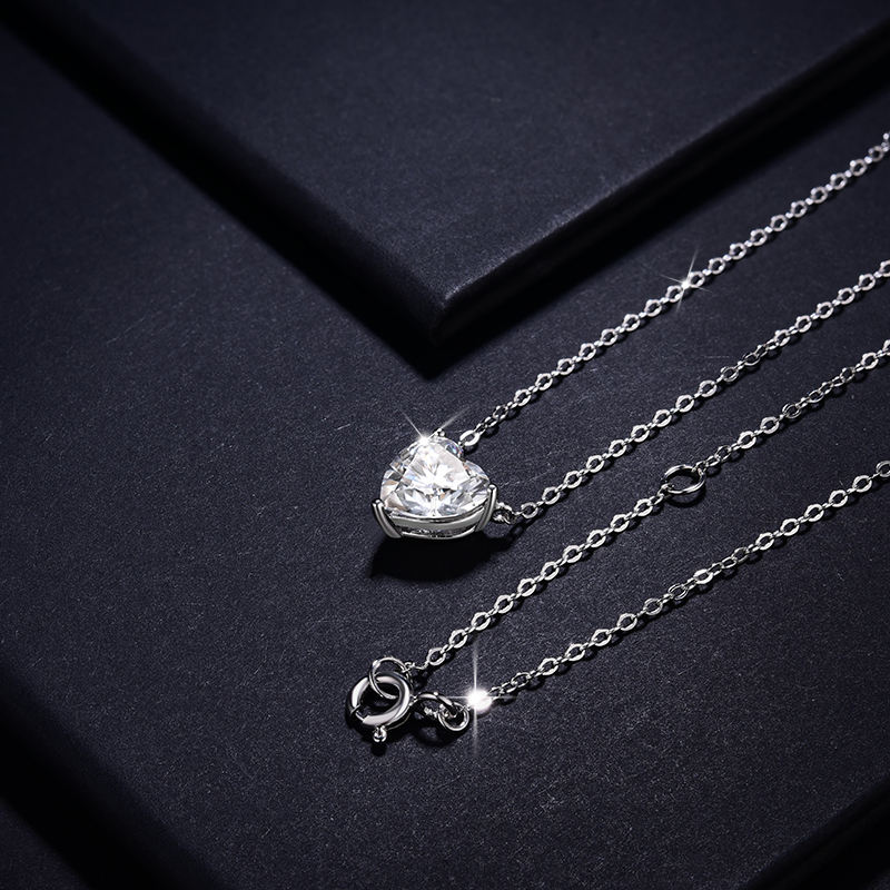 Minimalist Moissanite Heart Pendant Necklace for Women Rhodium Plated Claw Setting Trendy Heart-Shaped Silver Fashion Jewelry