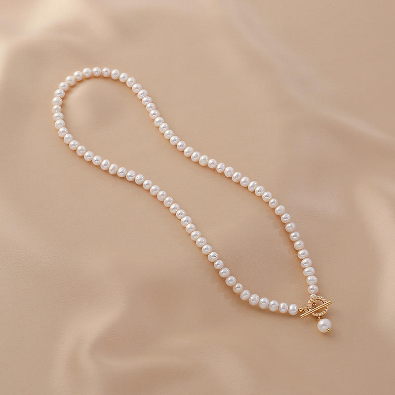 Minimalist OT Buckle Collarbone Chain Personalized Design Women's Fashion Freshwater Pearl Pendant Necklace Customized