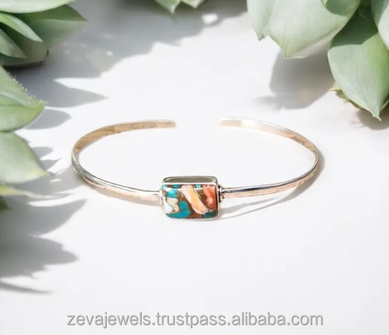 Minimalist Oyster Copper Turquoise Bangle 925 Silver Adjustable Trendy Cuff Bracelet Jewelry