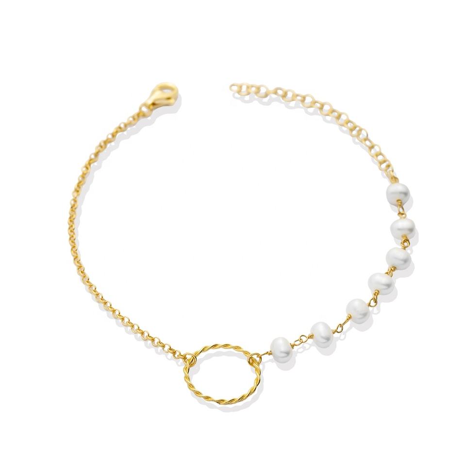 Minimalist Pearl and Chain Round Design Silver Charm Bracelet 925 Sterling Silver Wholesale Handcrafted Fine Jewelry for Women