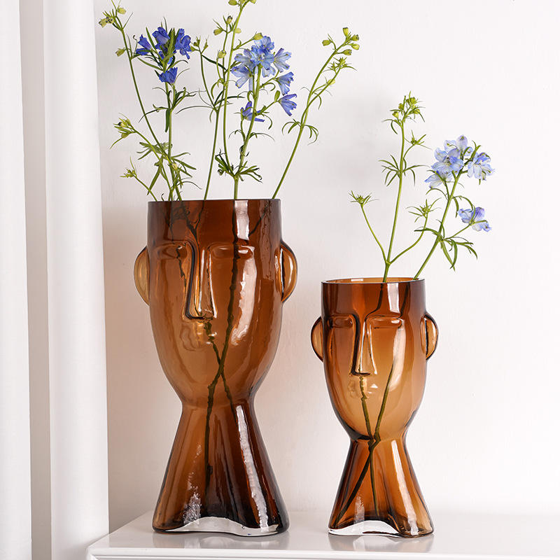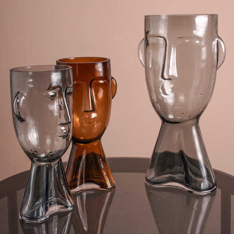 Minimalist Portrait Glass Vase Hydroponic Face Ornament for Living Room Internet Celebrity Desktop Accent Flower Vases