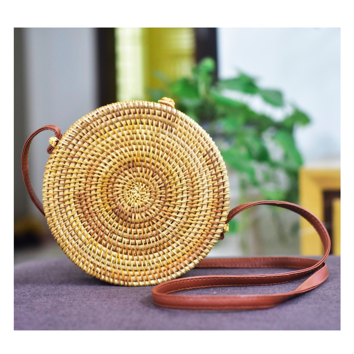 Minimalist Rattan Crossbody Bag Handwoven in Vietnam for Sustainable Fashion & Natural Lifestyle Lovers