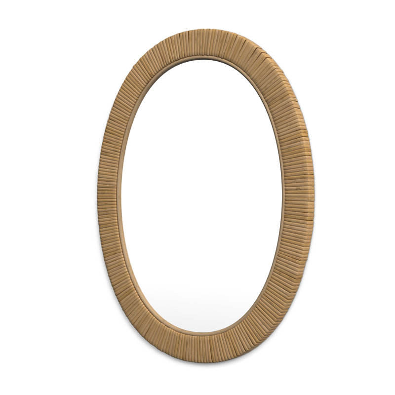 Minimalist Rattan Flat Wall Mirror with Wicker Frame Decorative Accent for Home or Office