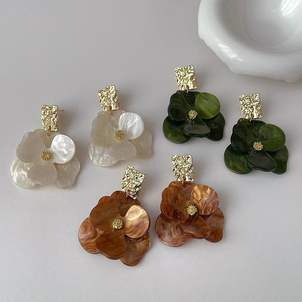 Minimalist Retro Exaggerated S925 Silver Needle Acrylic Flower Stud Earrings for Women Fashion Jewelry