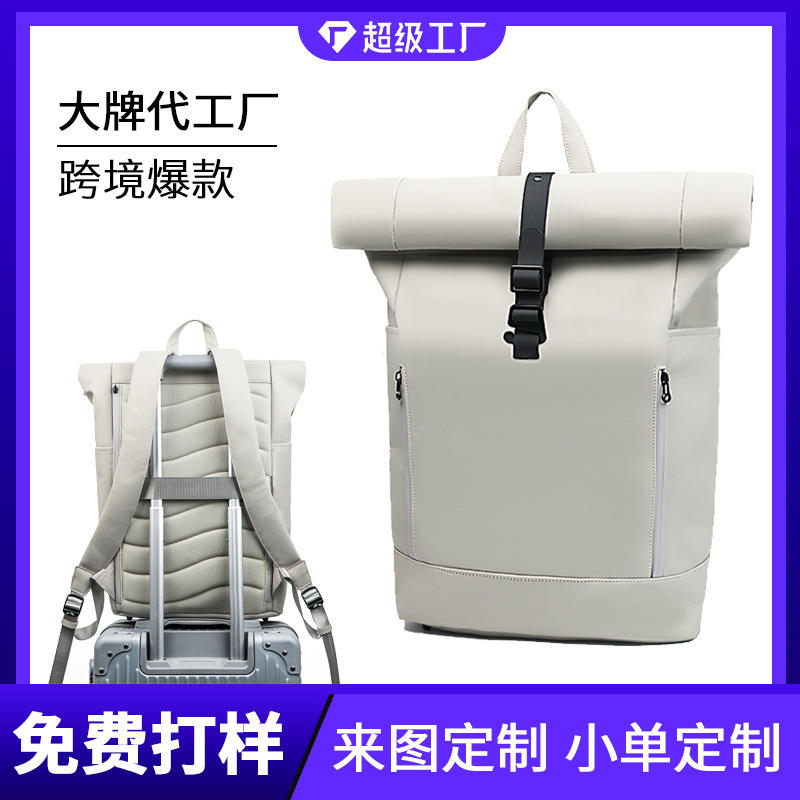 Minimalist Roll-Top Laptop Backpack Light Gray 20-35L Water Resistant Men's Commuter Bag for Business Travel and College Use