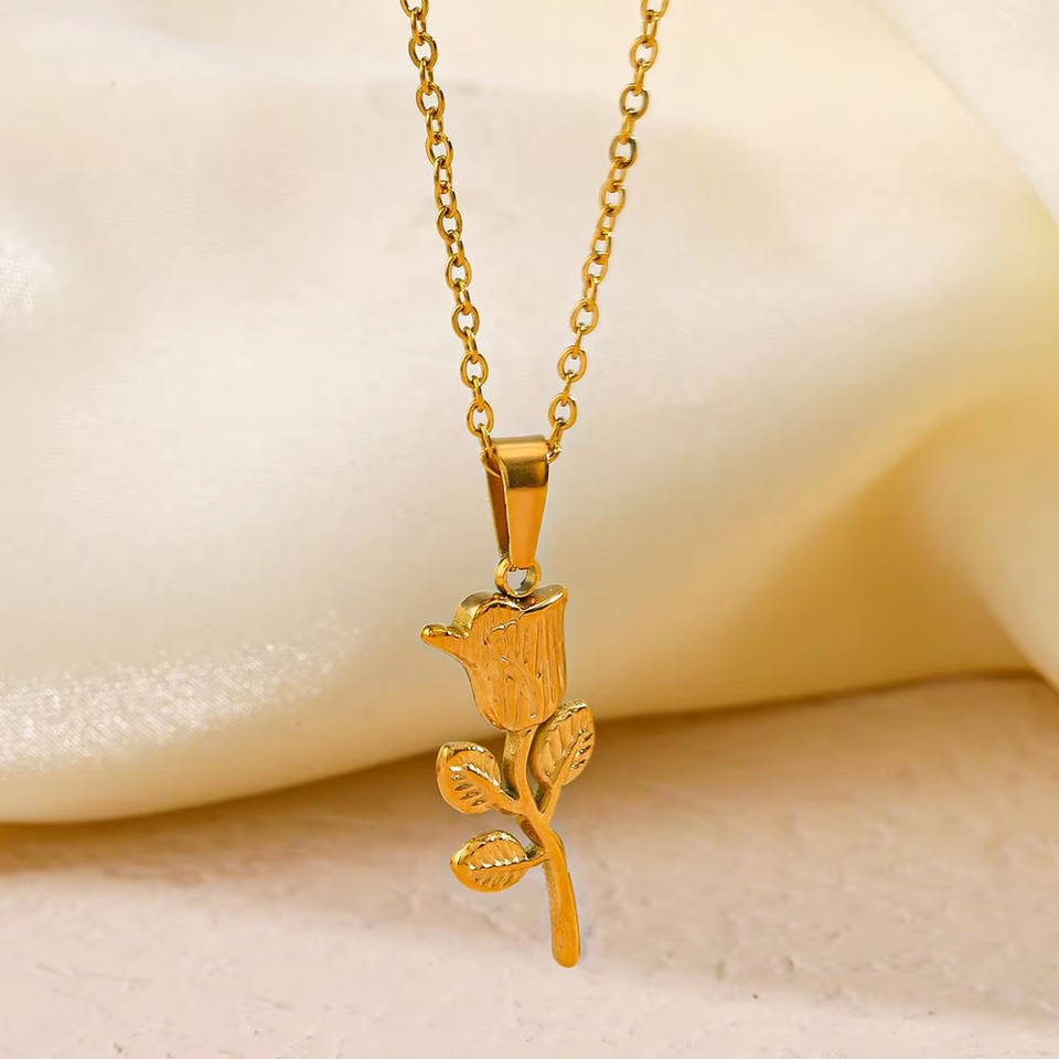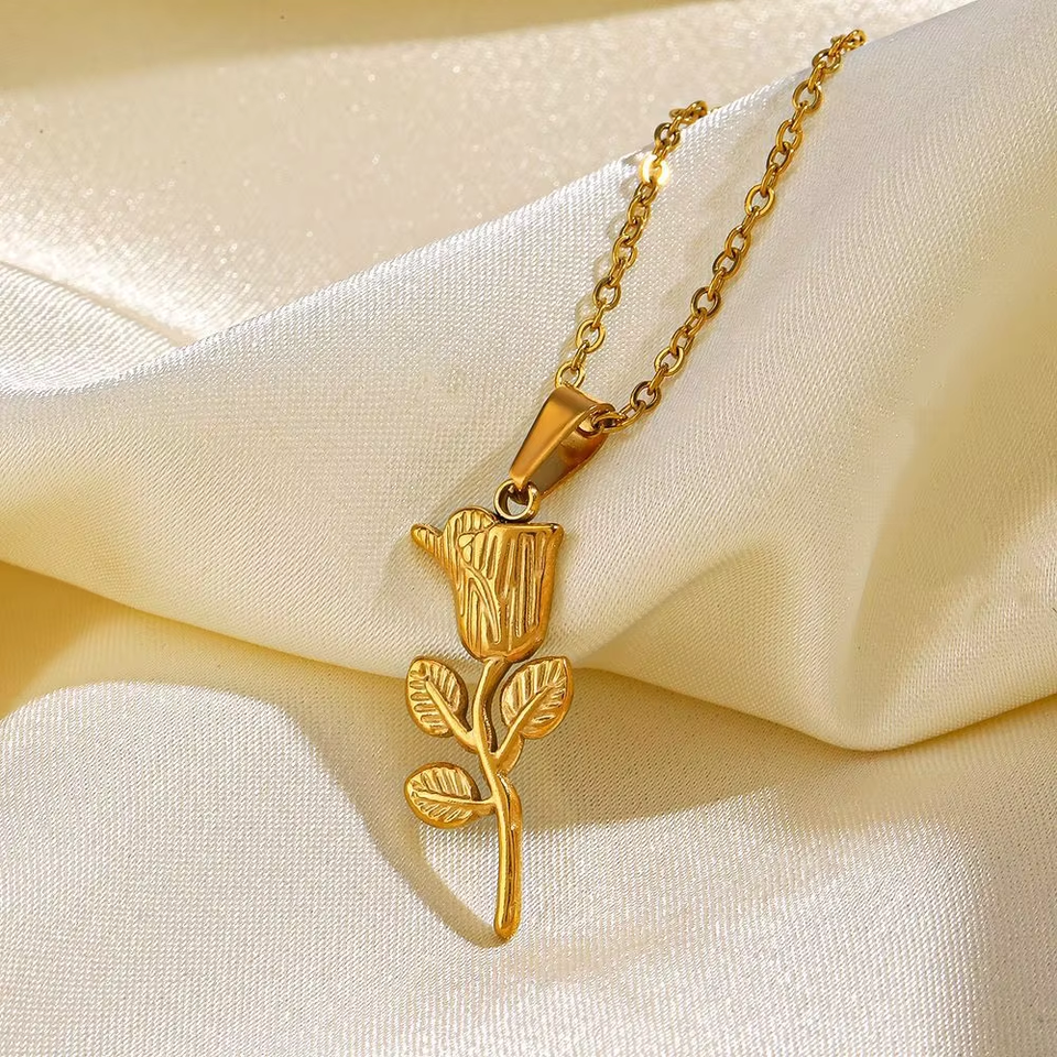 Minimalist Rose Pendant Necklace High Quality Wholesale Custom Cheap Stainless Steel Vintage Exquisite Rose Charm Necklace