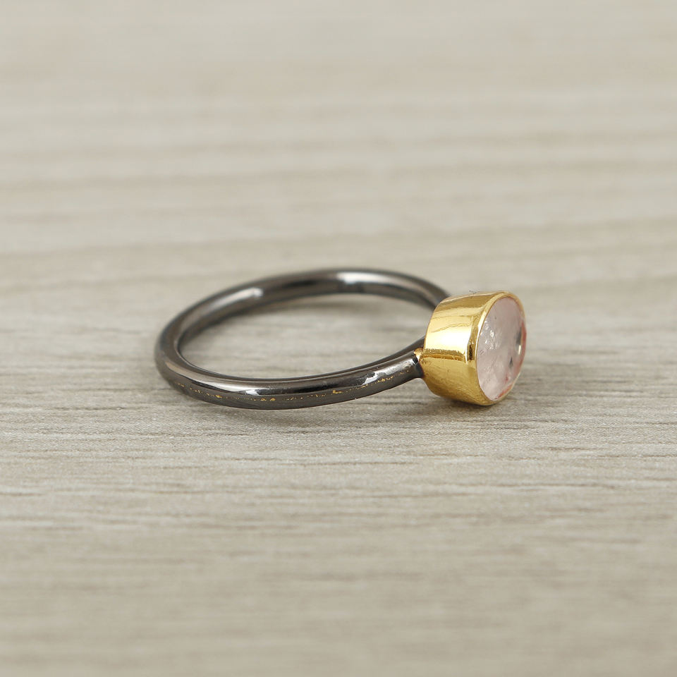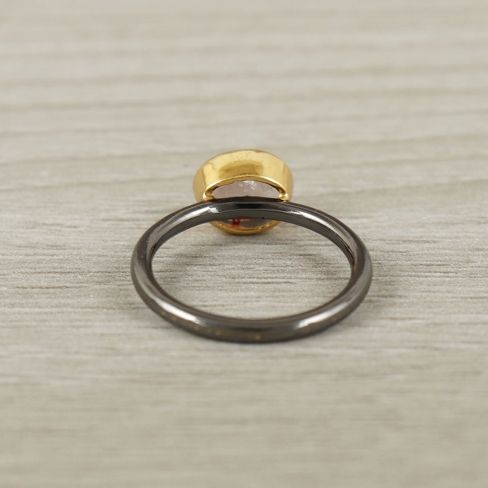Minimalist Rose Quartz Ring For Women 925 Sterling Silver & Gold Bezel Elegant Daily Wear Gemstone Jewelry