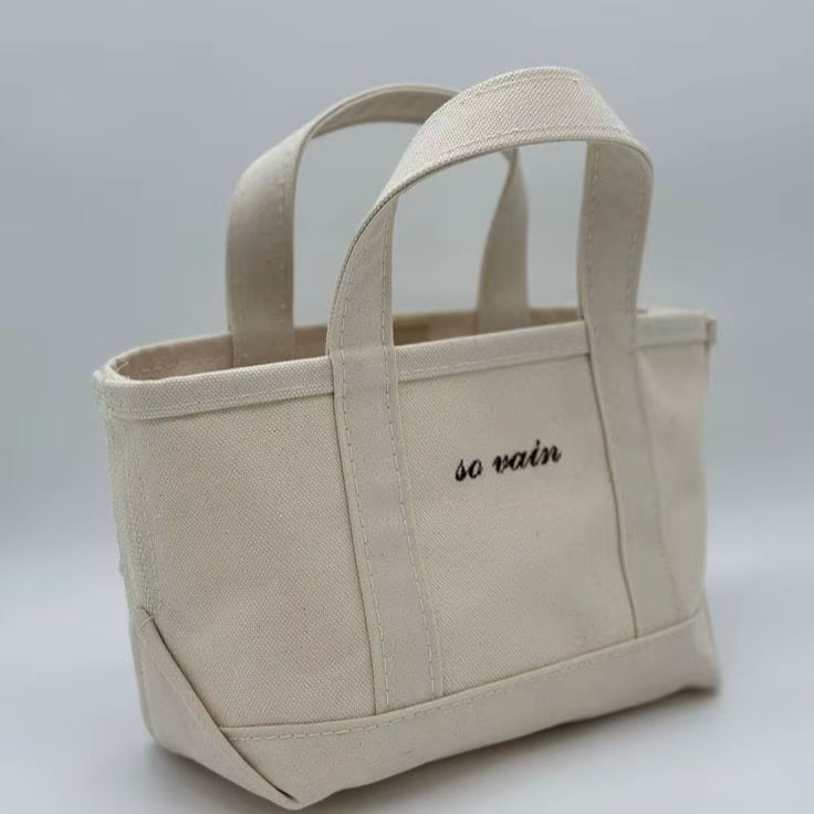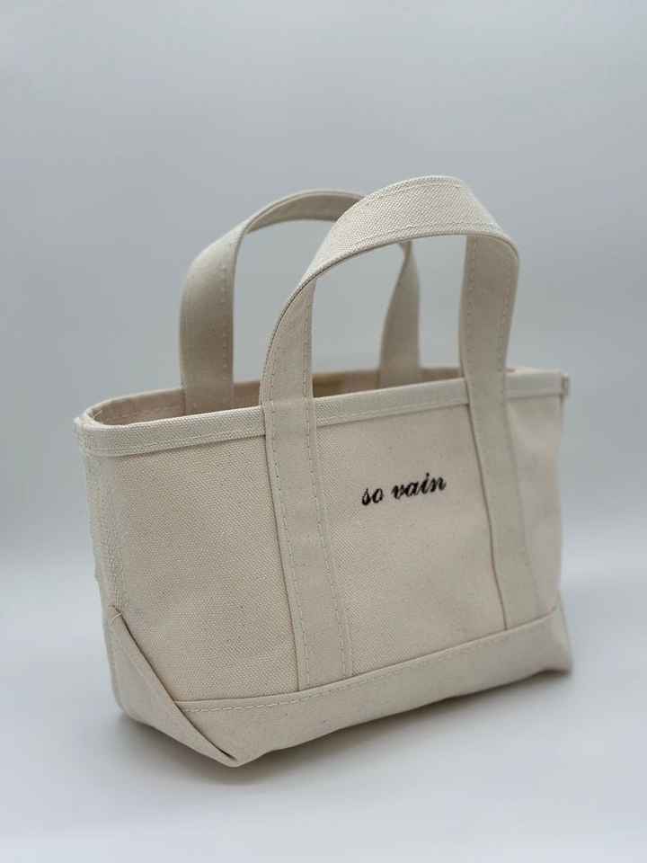 Minimalist So Vain Embroidery Mini Canvas Tote Bag Women Compact White Cotton Fabric Top Handle Handbag Small Daily Purse
