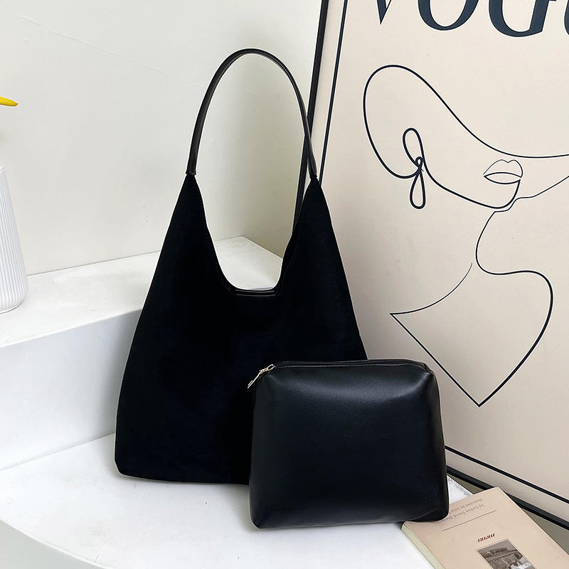 Minimalist Soft Suede Shoulder Tote Bag for Women Large Capacity Casual Daily Handbag Lightweight Stylish Slouchy Purse Beige