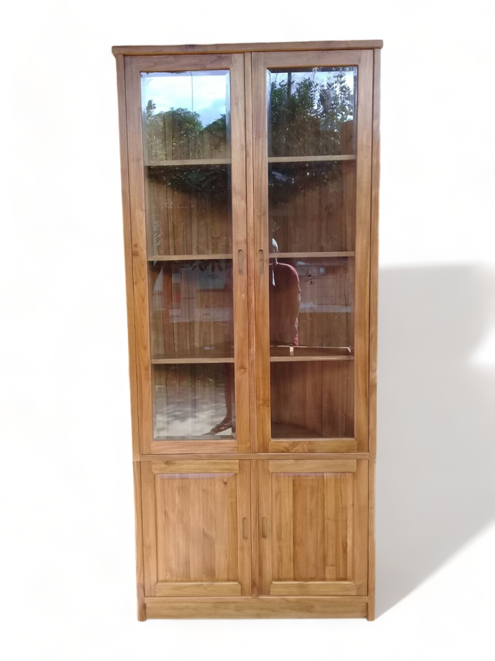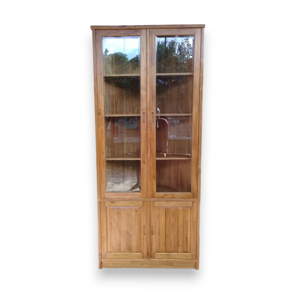 Minimalist Solid Wood Book Shelves for Living Room Furniture Teak Wood Showcases with Glass Door Wooden Corner Display Cabinet