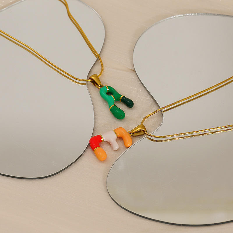 Minimalist Stainless Steel 18K Gold Plated 26 English Letter Pendant Necklace Colorful Enamel Bubble Initial Name Trendy
