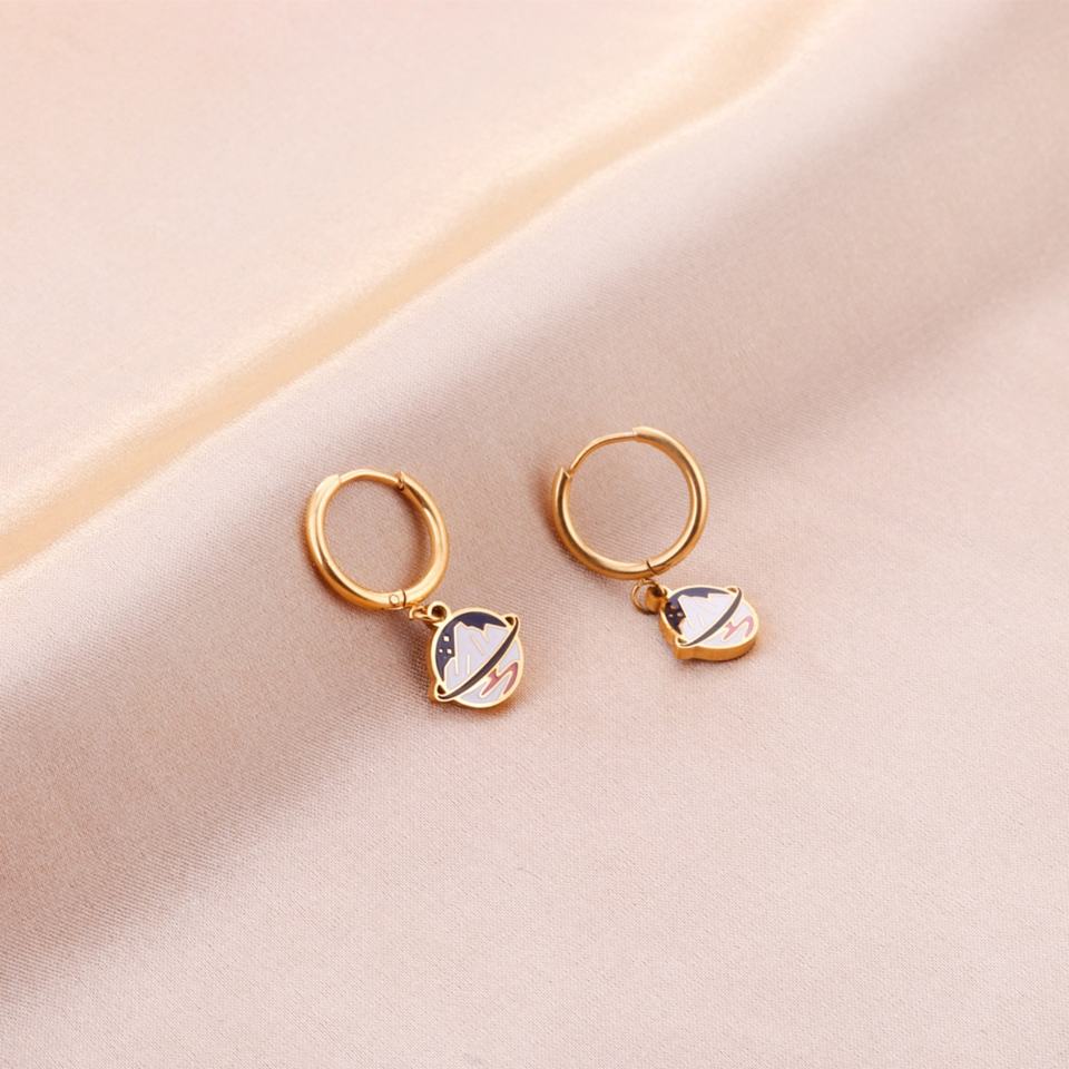Minimalist Stainless Steel Jewelry 18K Gold Plated Planet Dangle Earring Enamel Blue Saturn Charm Huggie Hoop Earrings for Women