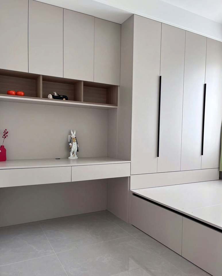 Minimalist Style Integrated Cabinet Bedroom Set with Wardrobe Desk Tatami Bed All in One Comfortable Unit