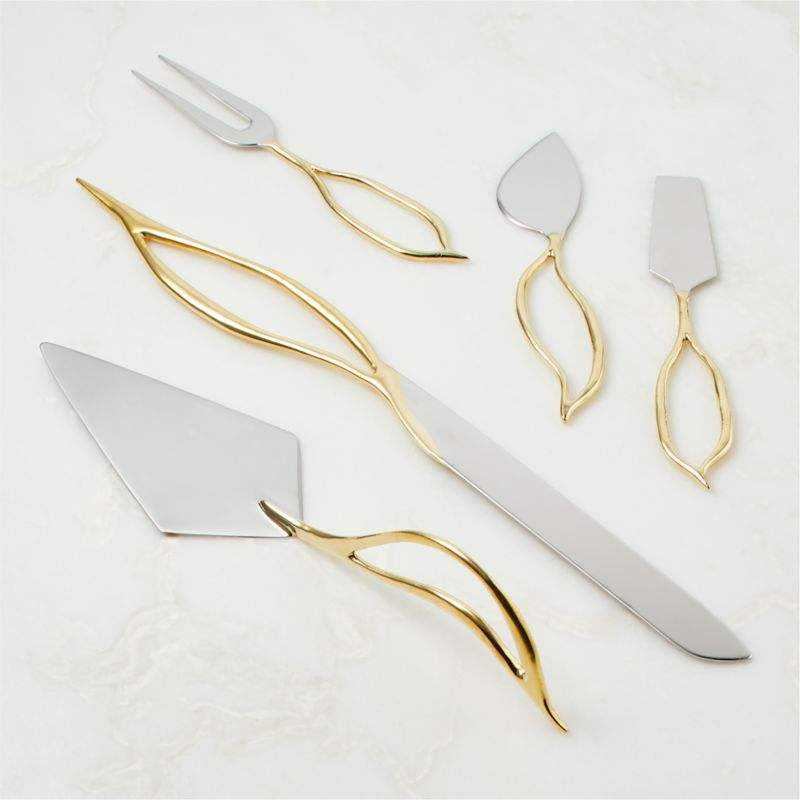 Minimalist Style Metal Gold Cheese Set With Round Design Wood Handle Cutlery Cheese Butter Spreader for Tabletop Use Cheese Tool