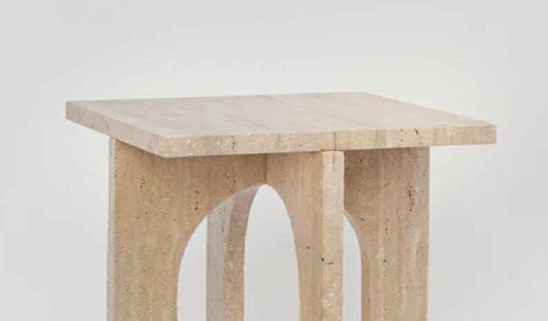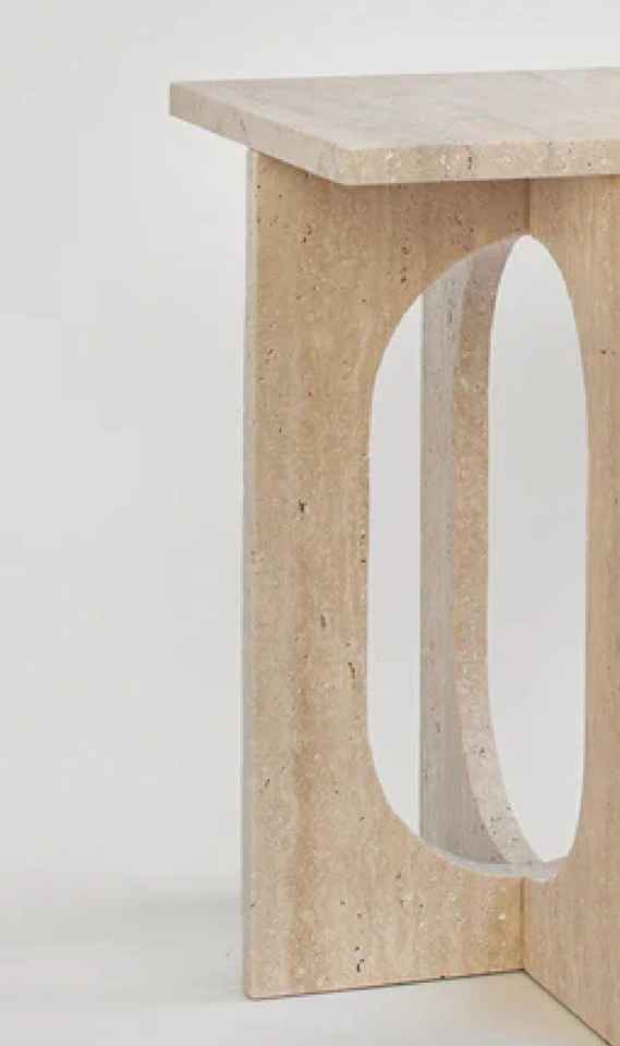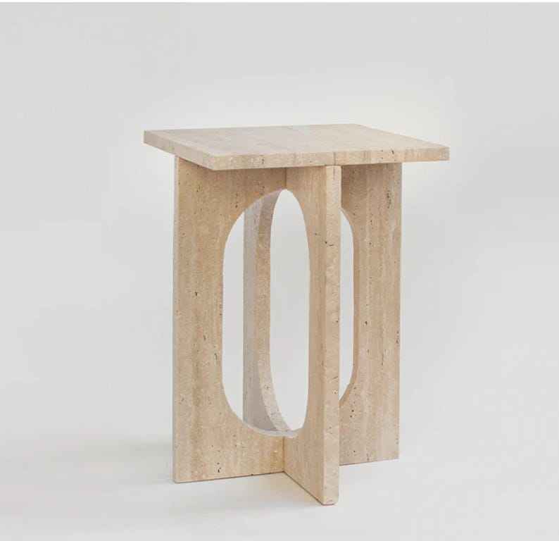 Minimalist Travertine Stone Side Table Sculptural Accent Stool Modern Coffee End Table Elegant Home Decor