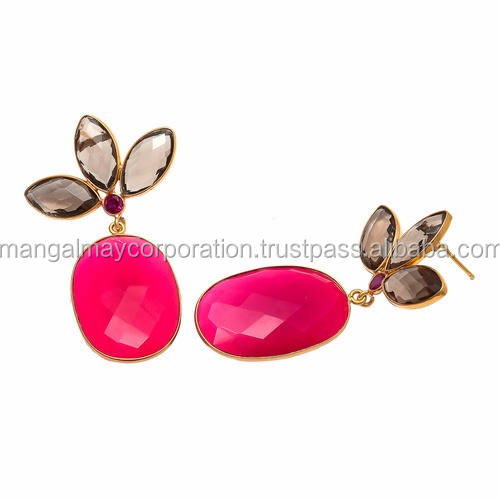Minimalist Trendy Style Crystal Stud Earrings Uneven Mix Color Rough Electroplated Prong Set Mix Color Gems