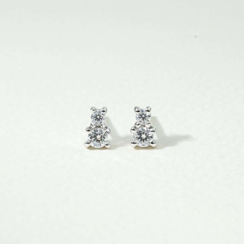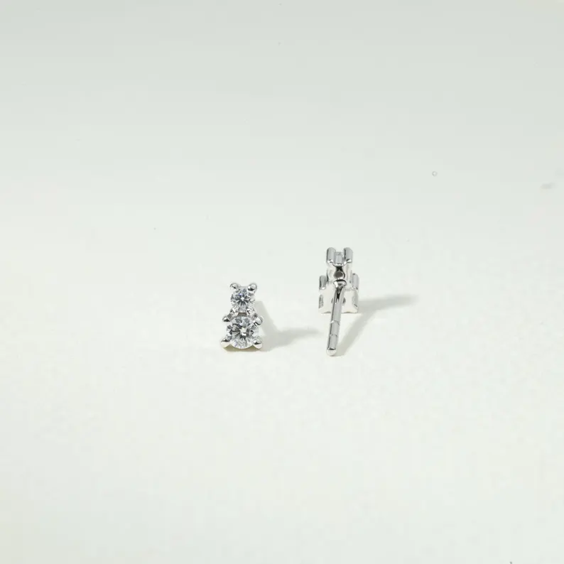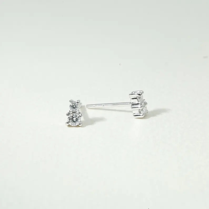 Minimalist Two Stone Diamond Stud Earrings Handmade Solid Gold With Natural Or Lab Grown Diamonds Dainty Everyday Fine Jewelry