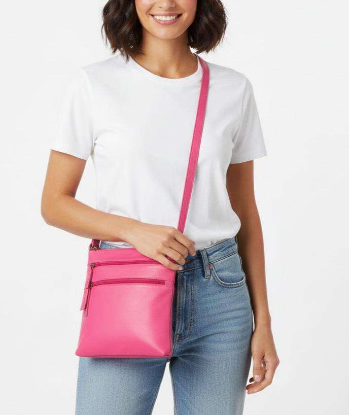 Minimalist Women PU Leather Crossbody Sling Bag Lightweight Design with Multiple Zip Pockets
