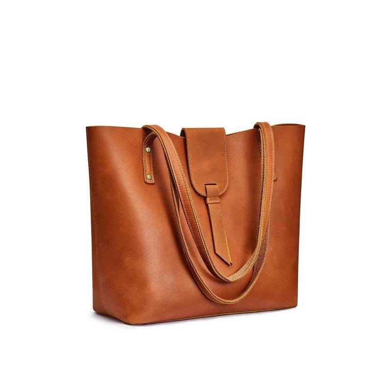 Minimalist Women's Genuine Leather Casual Tote Bag with Zipper Closure | Waterproof & Portable Everyday Work Shoulder Handbag