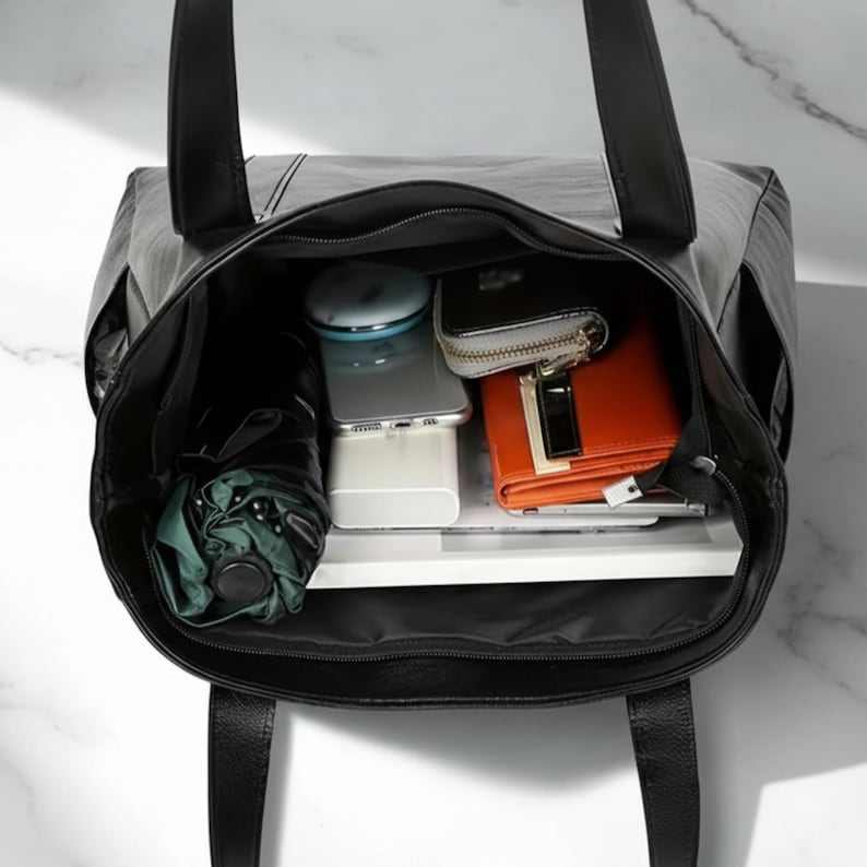Minimalist Womens Genuine Leather Casual Tote Bag Zipper Waterproof Large Capacity Everyday Shoulder Handbag Black Brown