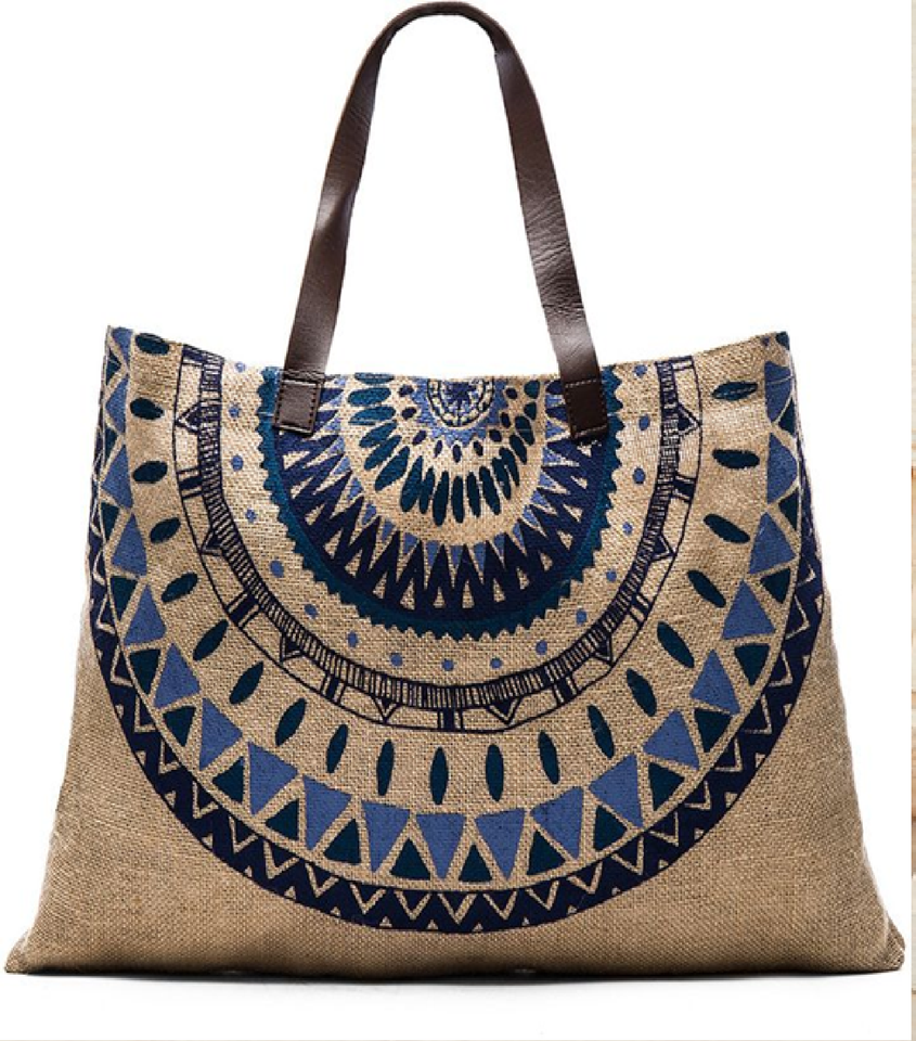 Minimalist jute and faux leather tote bag, woven texture with contrast trim, classic carryall available at wholesale prices.