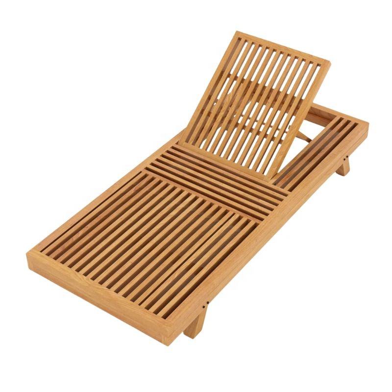 Minimalist Teak Wooden Sun Loungers for Outdoor Furniture with Soft Foam Comfortable Sunbed Swimming Pool Chair