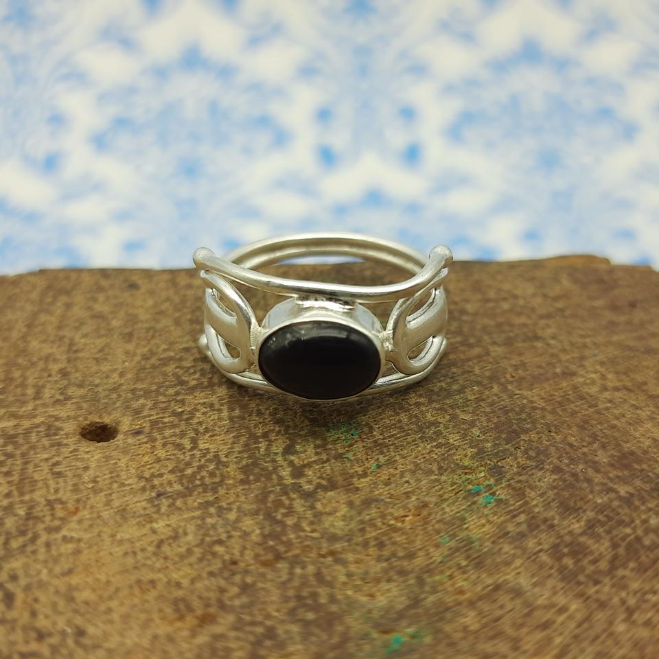 Minimalistic Black Onyx Bohemian Gemstone Ring Solid Silver Light Weight Artisan Crafted for Girls for Wedding or Party