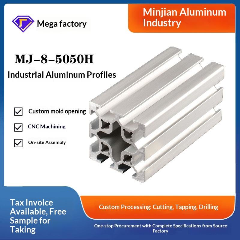 Minjian Aluminum Direct Sales Industrial Aluminum Profile 5050H Double Slot Aluminum Assembly Line Profile Cutting and Punching