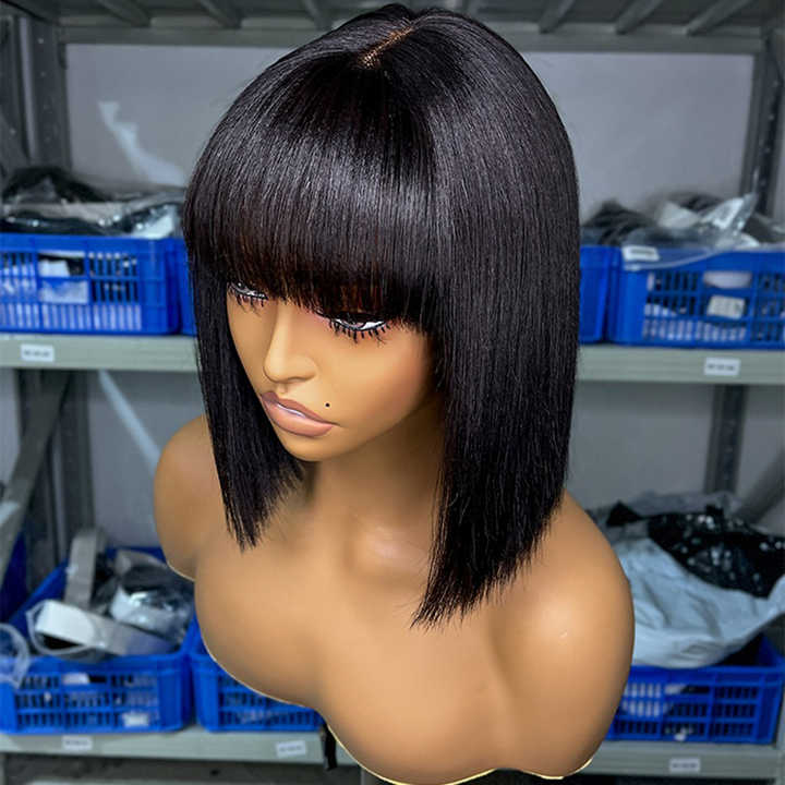Hair Texture:Yaki Straight Bob Brazilian Human Hair Wig For Black Women