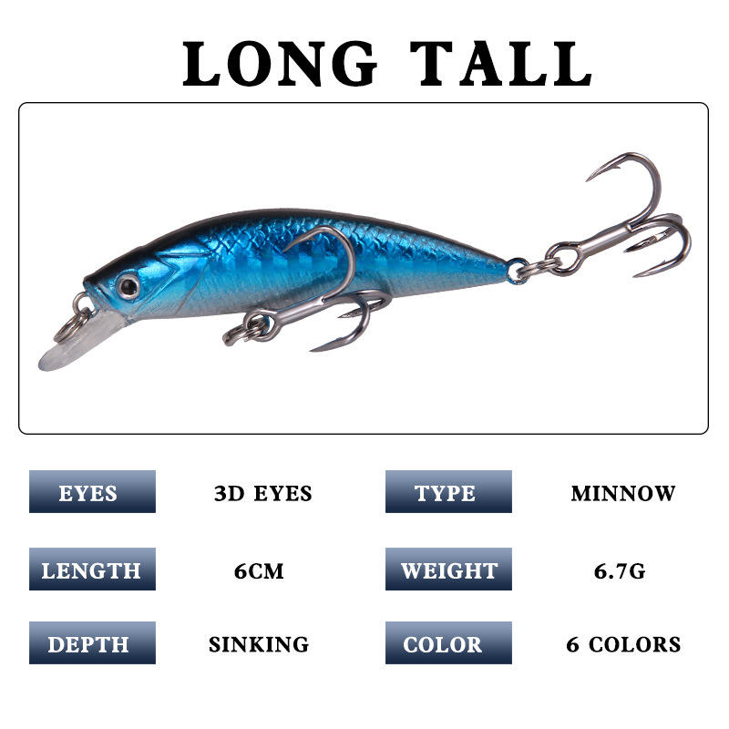 Minnow Lure 6Cm 6.7G Sinking Hard Bait With Blood Groove Hook For Bass Fishing Gear