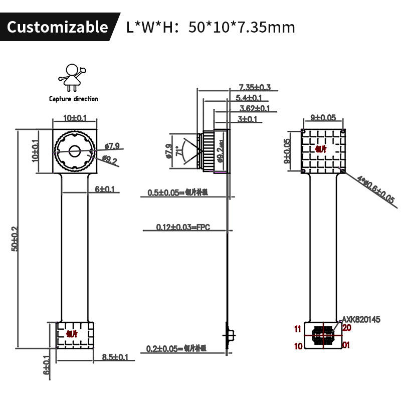 Mipi 24pin 1080 30Fps Omnivision Sensor OV2735 2MP IR AI Vision Camera Module