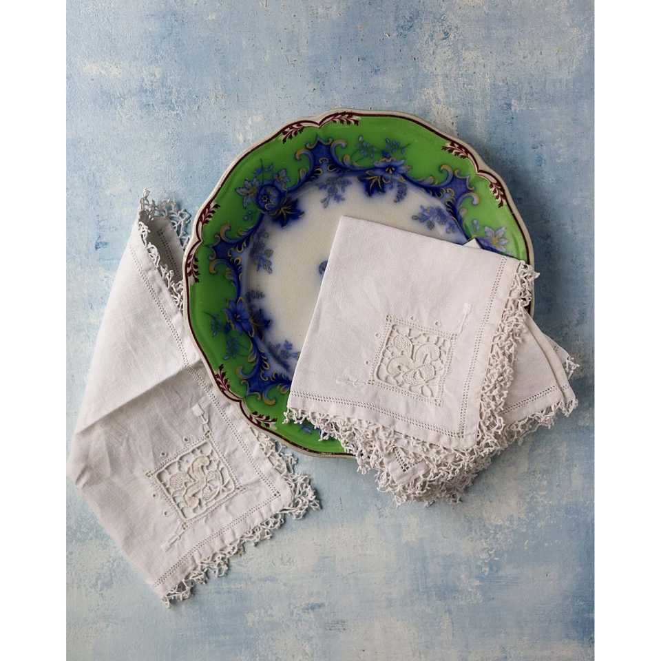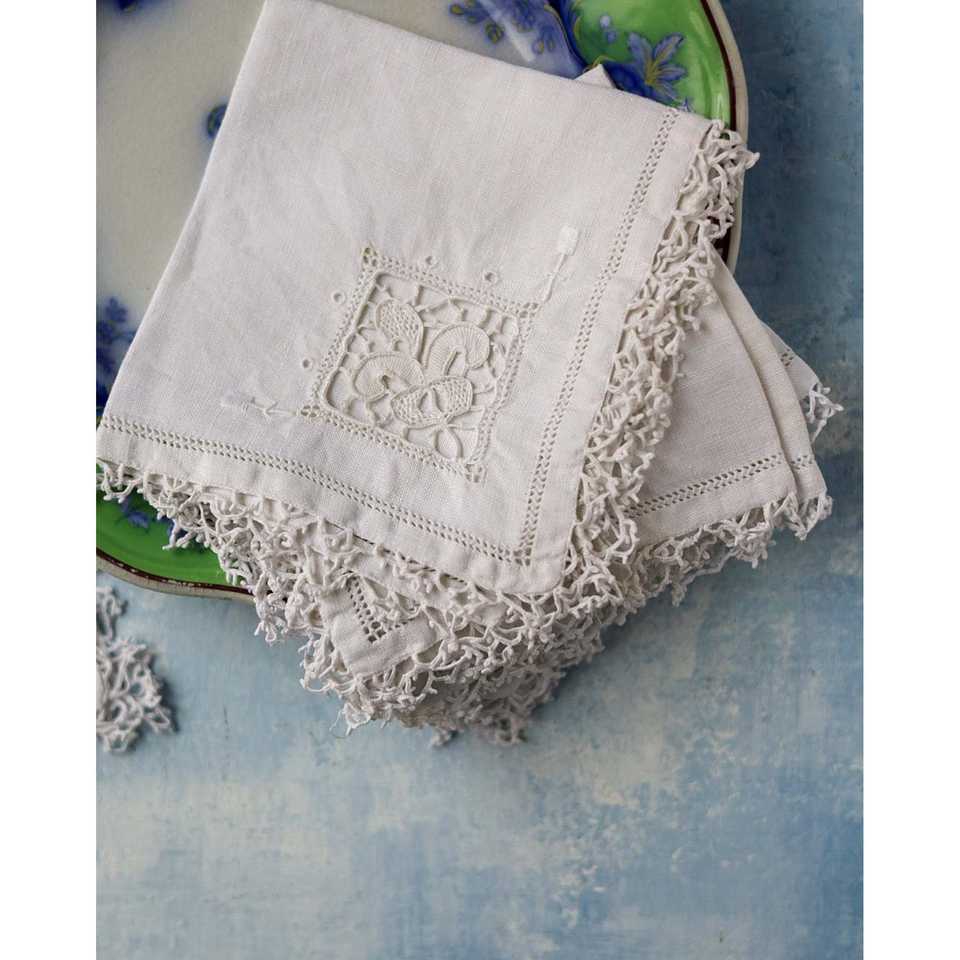 Mirellas Set of 4 Aperitif or Dessert Napkins with Elegant Needle Lace Cloth & Accessories
