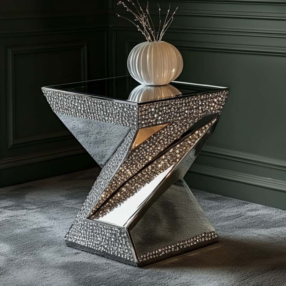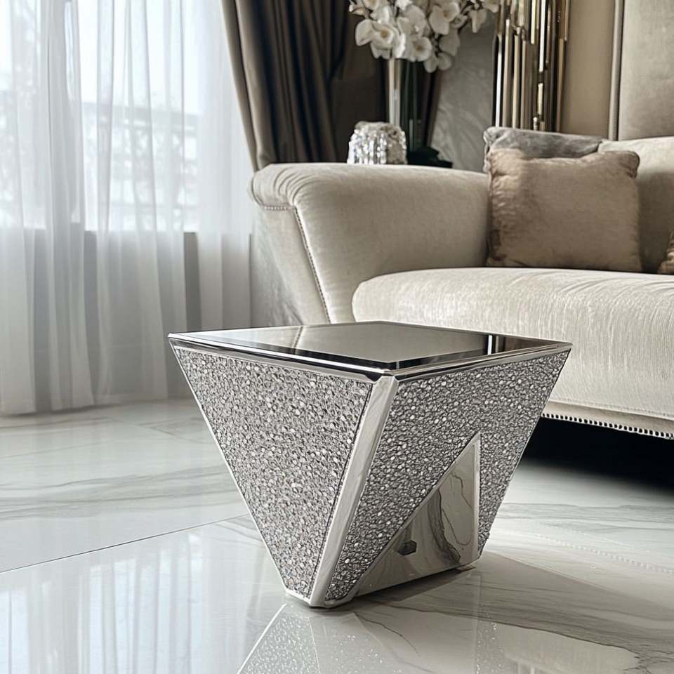 Mirror Furniture Nesting Side Diamond Crystal Table Set Nightstand Table