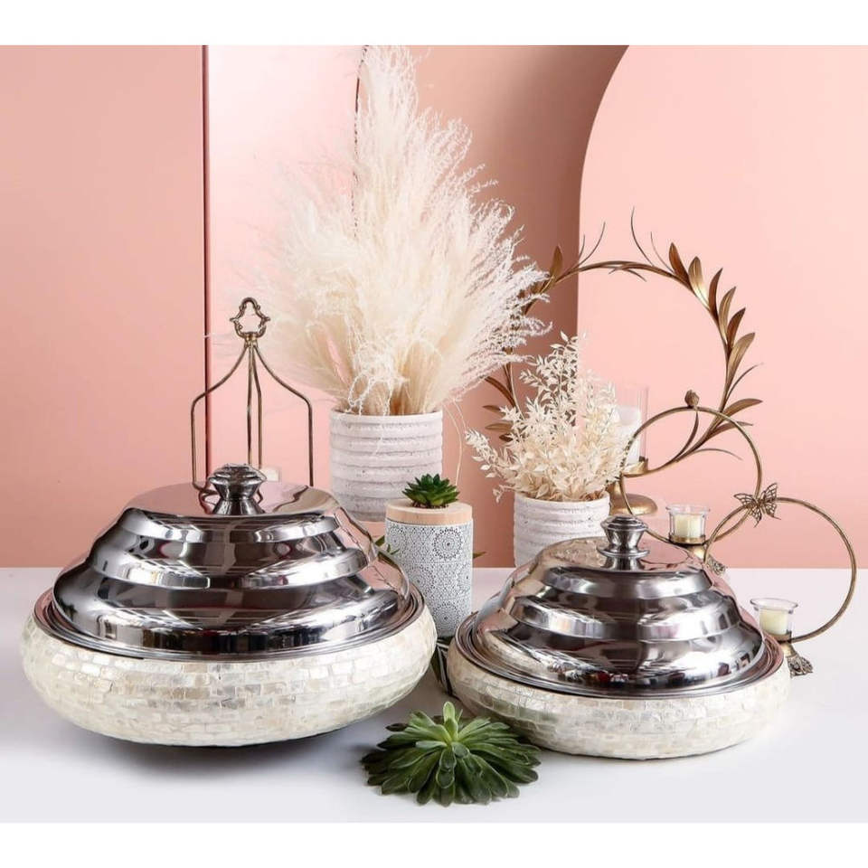 Mirror Polished Table Top Food Hot Pot Casserole Serving Dish Made of Wood and Mother of Pearl Serving Pots By Rm International