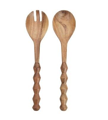 Mirrored Steel Natural Wood Salad Spoon Fork Wooden Utensils Large Spoons Salad Servers Cooking Kitchen Tools
