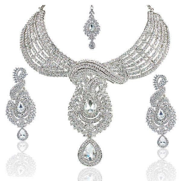 Mithya Fine Jewelry Set Silver Plated Austrian Stone Necklace