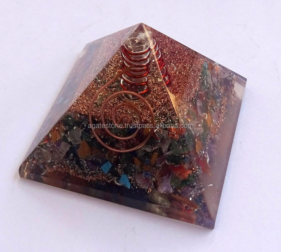 Mix Chakra Stone Orgone Pyramid with Crystal Quartz Point Semi-Precious Stone Craft From India for Spiritual Energy & Decoration