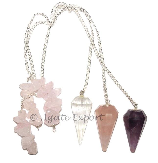 Mix Stone 6 Faceted Pendulums With Agate Chips Feng Shui Stone Healing Products