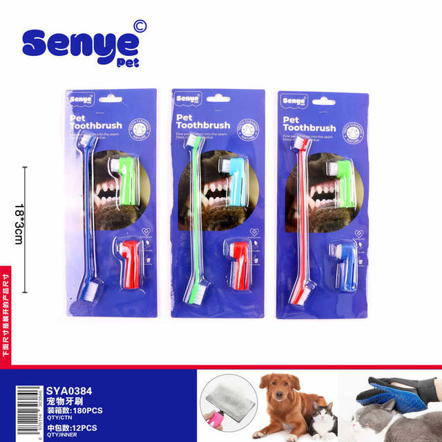 Mixed Color 3-Piece Pet Toothbrush Set PP Nylon Oral Care for Dogs Cats Medium Bristle 12 Packs Per Box for Hotel Travel Use
