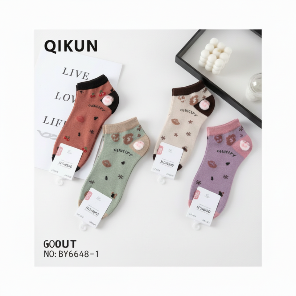 Mixed Color Ladies Floral Socks One Size Winter Warm Breathable Nylon Striped Heart Embroidery Transparent Print Patterns Ankle