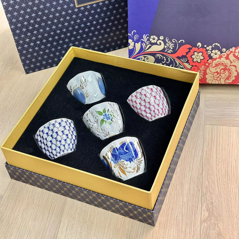 Mixed Color Royal Russian Bone Porcelain 5-piece Milk Mugs with Gift Box Dishwasher Safe Home Use