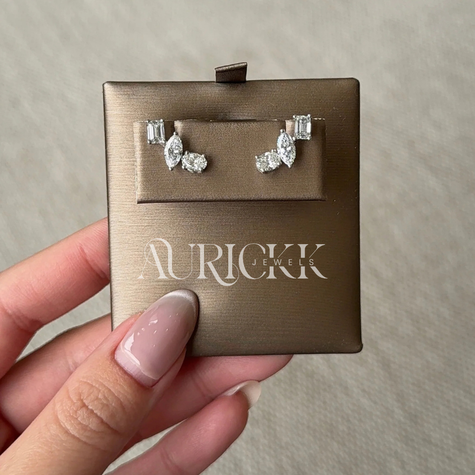 Mixed Cut Silver 14k Gold Rhodium Plated Moissanite Stud Earrings Elegant Climbers for Weddings Parties Engagements Anniversary