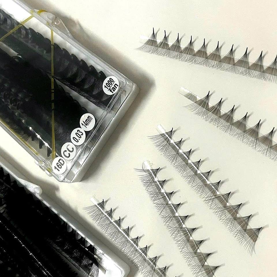 Mixed Length 3D 20D CC/DD/LD/M Curl Handmade Synthetic Hair Natural Long Lash Extensions Matte Black Pointy Base Easy Fans