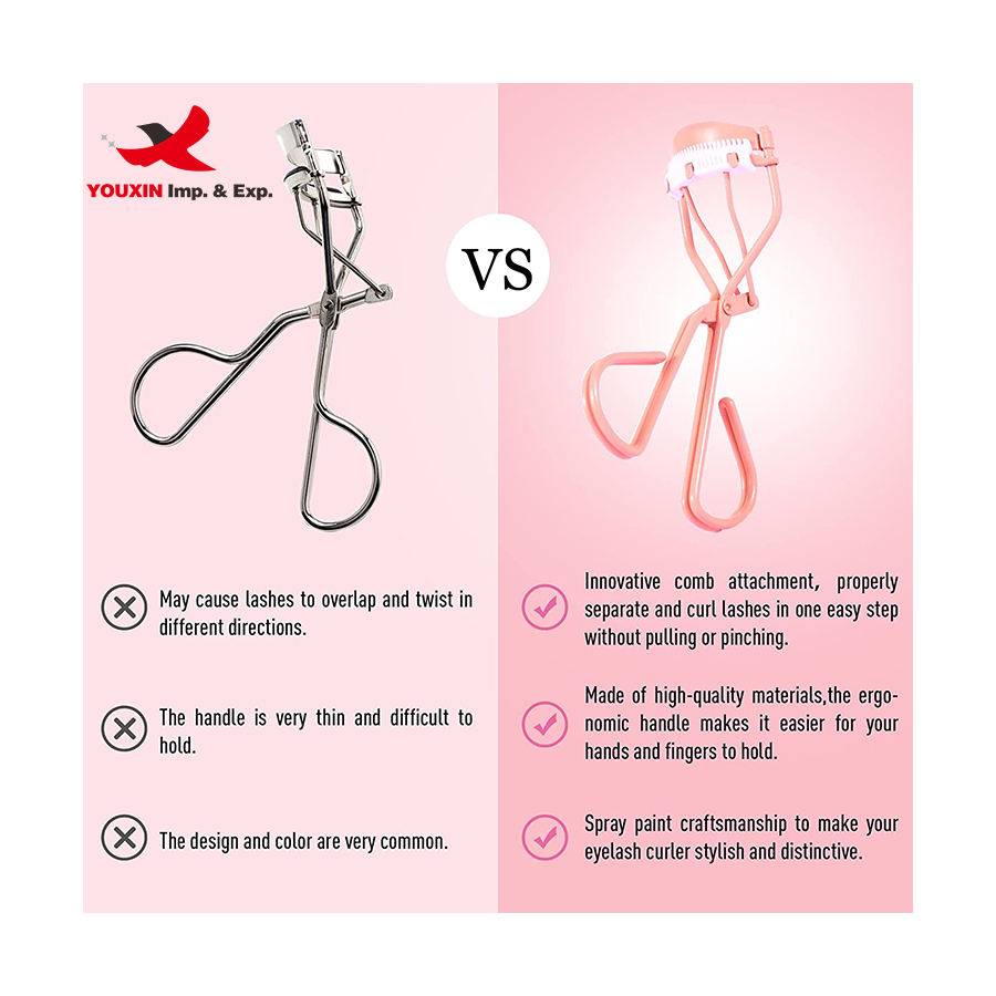 Mixed Procurement Low Price FENGFLY Make Curl Eyelash Tool Custom Private Label Carbon Steel Pink Eyelash Curler With Comb