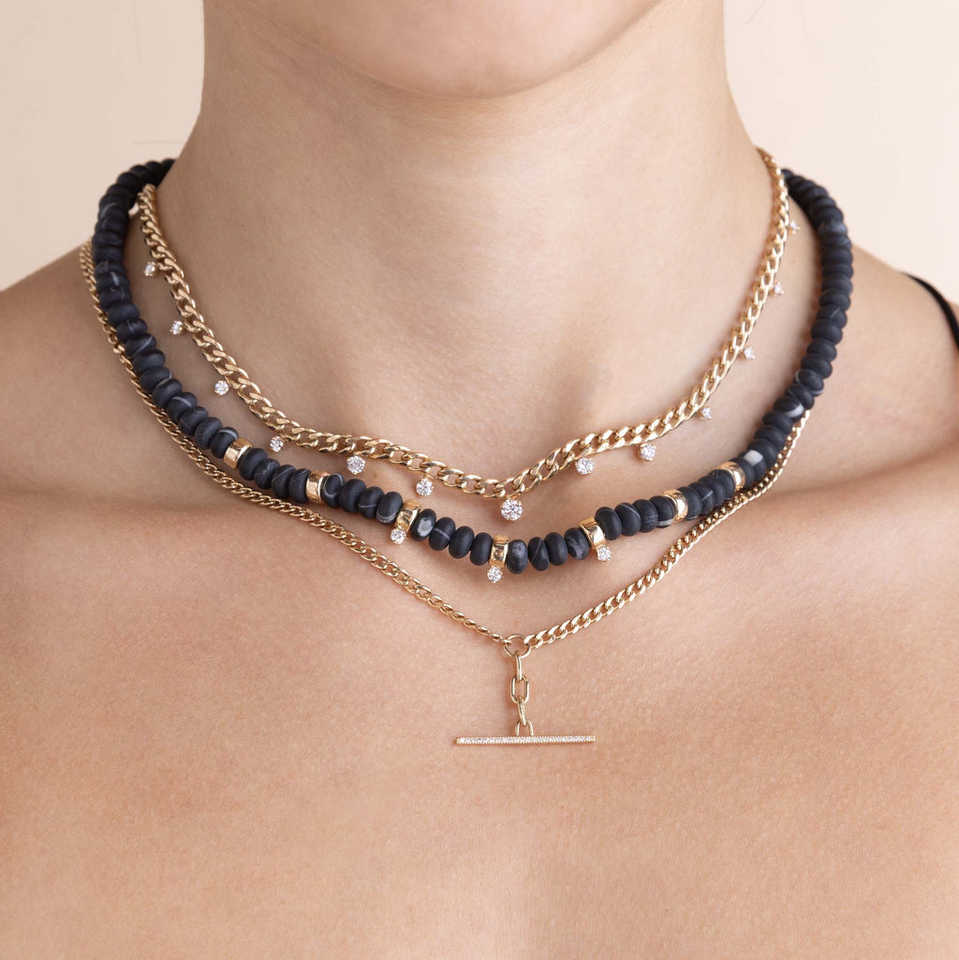 Mixed Small Curb & Medium Square Oval Chain Round Cut Pave Diamond Toggle Lariat Necklace 14k Yellow Gold Birthday Gift for Her