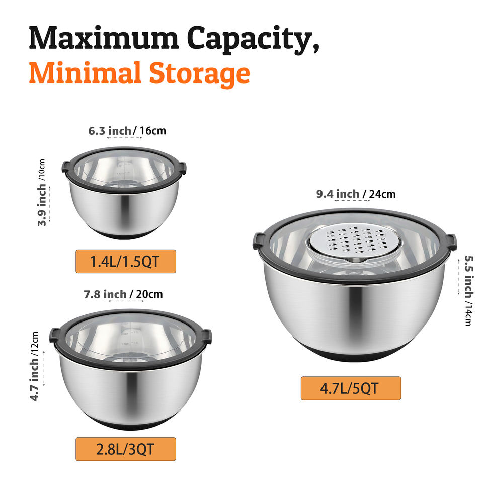 Mixing Bowls Grater Transparent Lid 16 20 24cm Stainless Steel Mixing Bowl