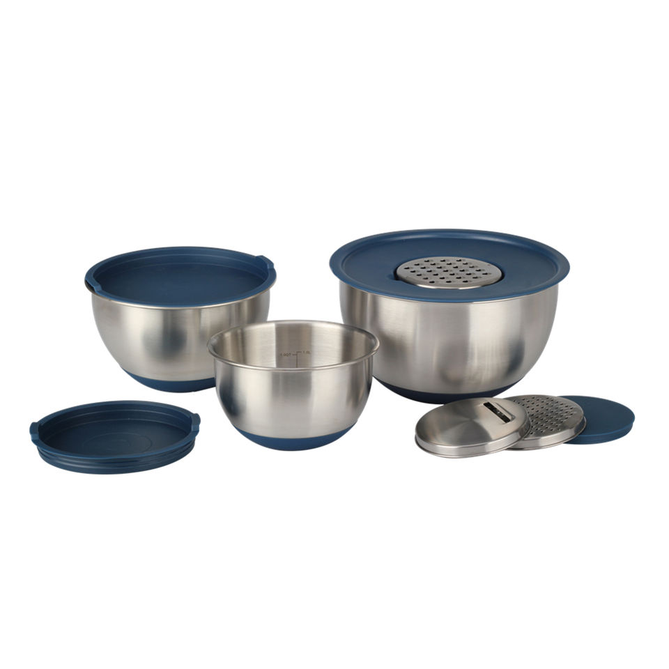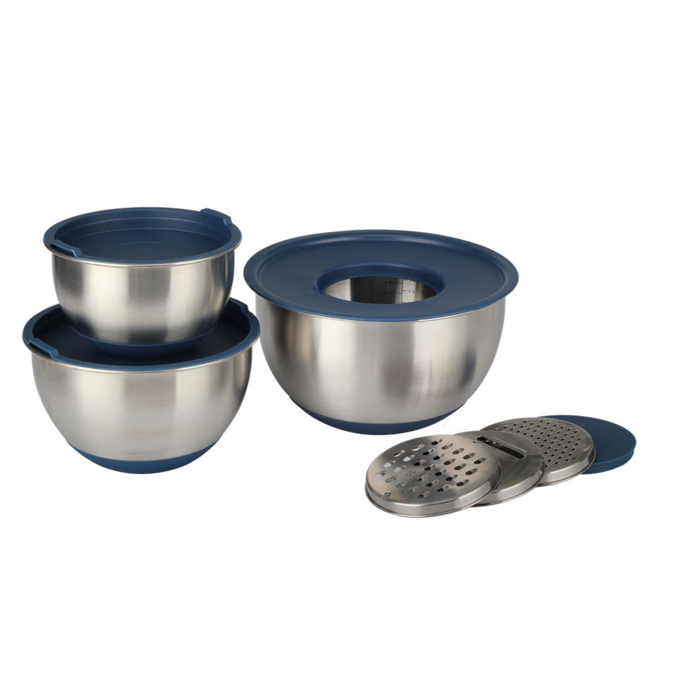 Mixing Bowls, Stainless Steel Nesting Salad Bowls with Lids Set of 3 & 3 Grater Attachments, For Mixing/Serving/Storing