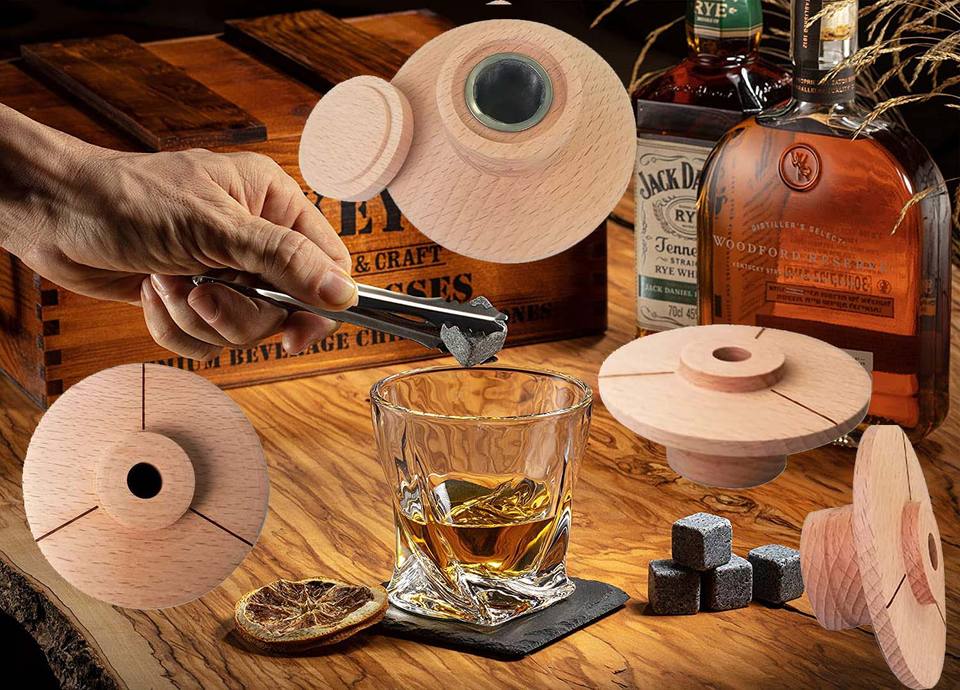 Mixology Whiskey Stones Gift Set for Men, Whiskey Glass Set With Rustic Wooden Crate, 8 Granite Whiskey Rocks Chilling Stones, 1