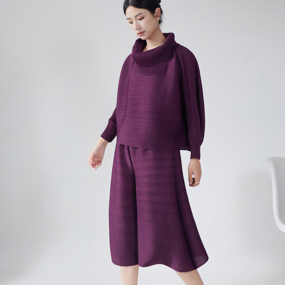 Miyake Wide-leg Pants Suit Women's 2-piece Suit Plus Size Pleated Top Loose Casual Pants a Complete Set of Clothes